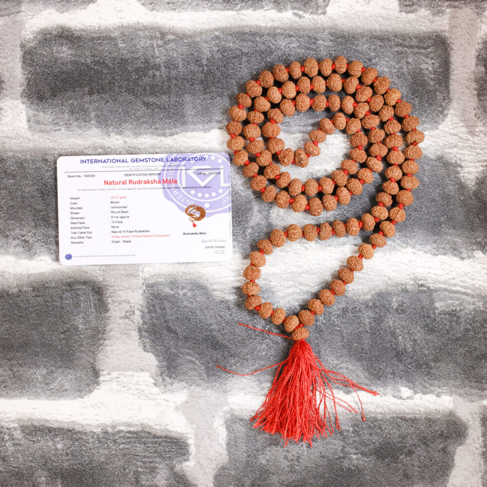 • Authentic 10 Mukhi Rudraksha Beads – Genuine Indonesian beads symbolizing protection and spiritual alignment.