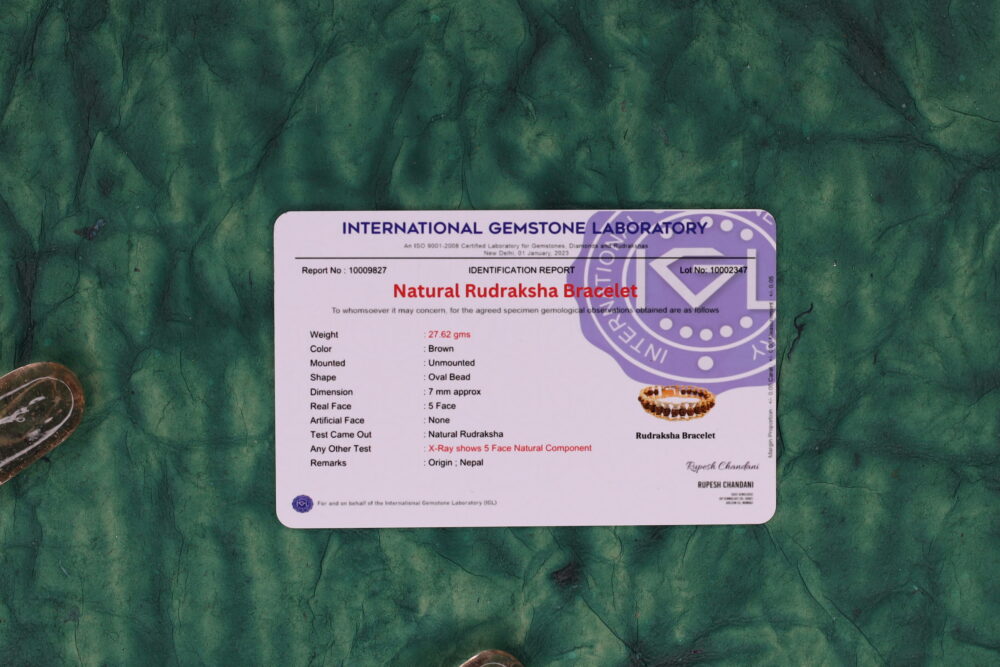 Certificate for 5-Mukhi Rudraksha Bracelet
