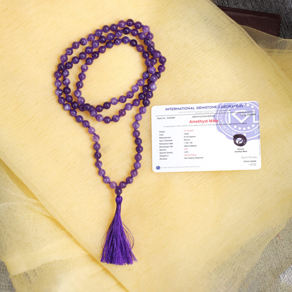 Amethyst Mala Brings Sense mein feel of purity aur positive energy milti hai. 100% worth it.