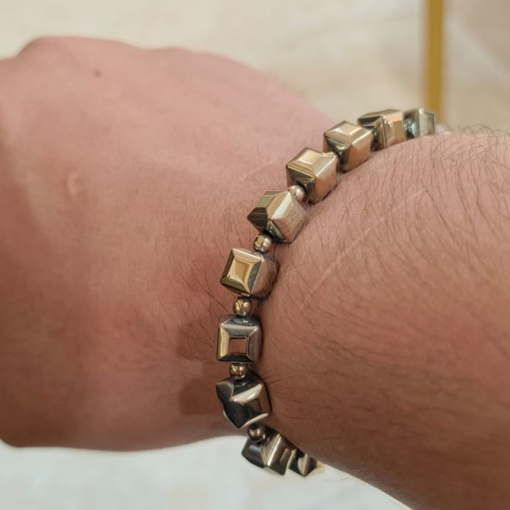 Kya aap stylish aur spiritual dono qualities chahte hain? To Cubic Pyrite Bracelet Enhances aapke liye bana hai!
