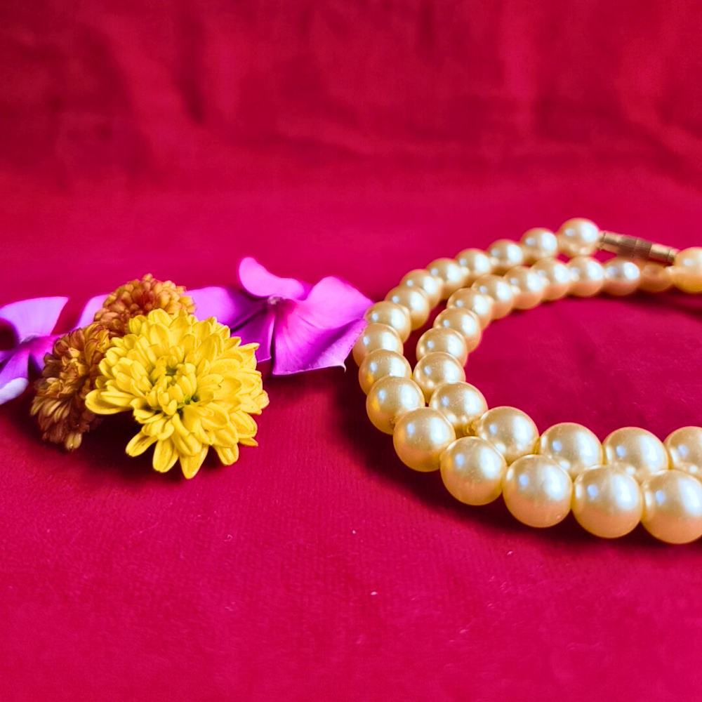 Golden Pearl Necklace South mein feel of purity aur positive energy milti hai. 100% worth it.