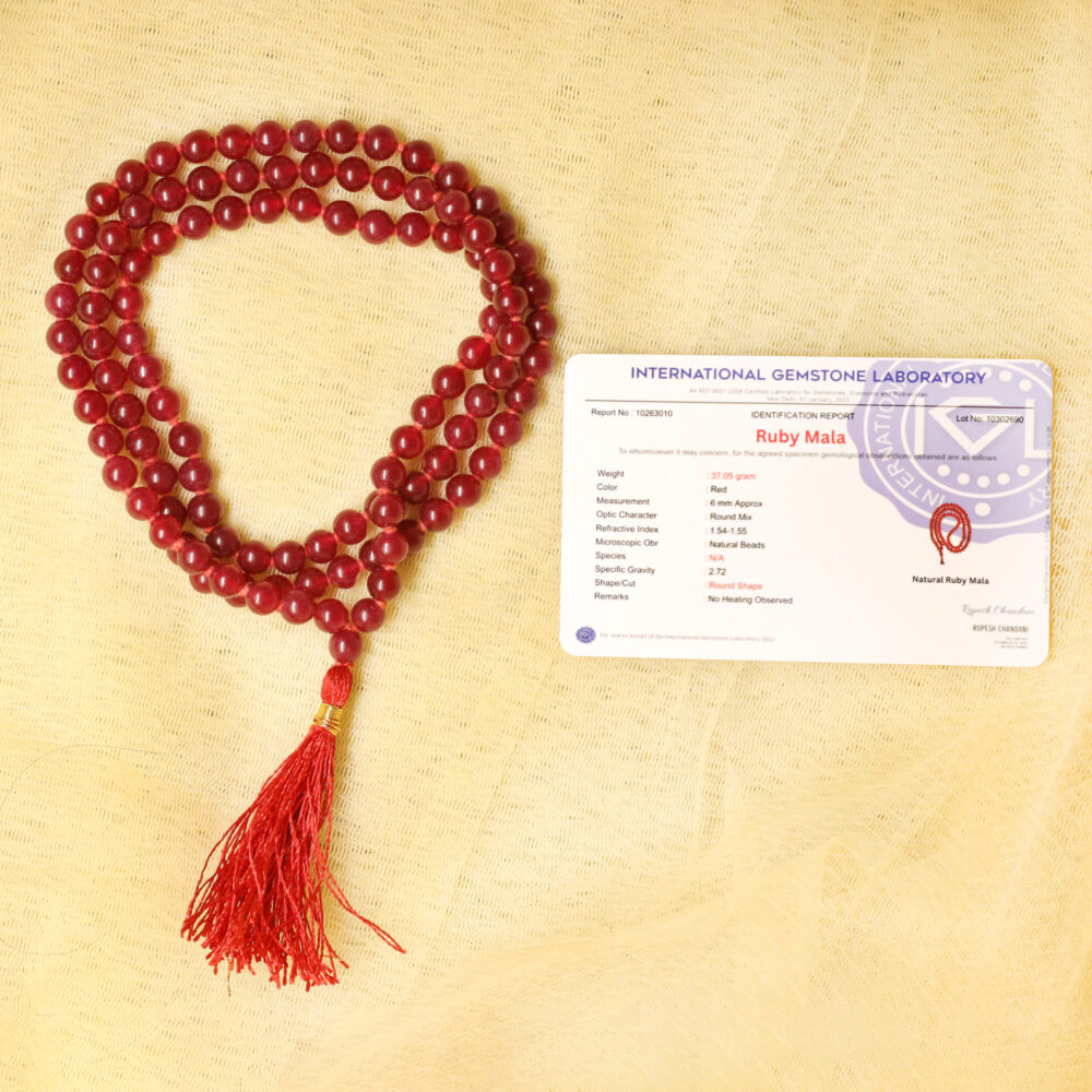The Ruby Mala is more than a spiritual accessory—it is a tool for enhancing personal confidence, influence, and social poise. Whether worn daily, used in meditation, or gifted to a loved one, it serves as a reminder to embrace self-assurance, maintain clarity, and shine in all personal and professional interactions.